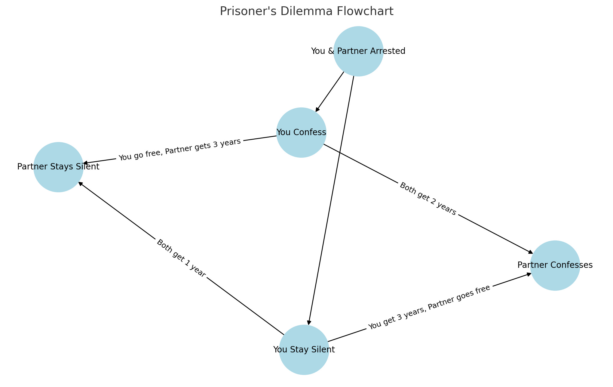 Here is a detailed flowchart for the Prisoner’s Dilemma, illustrating the possible decisions and their consequences: